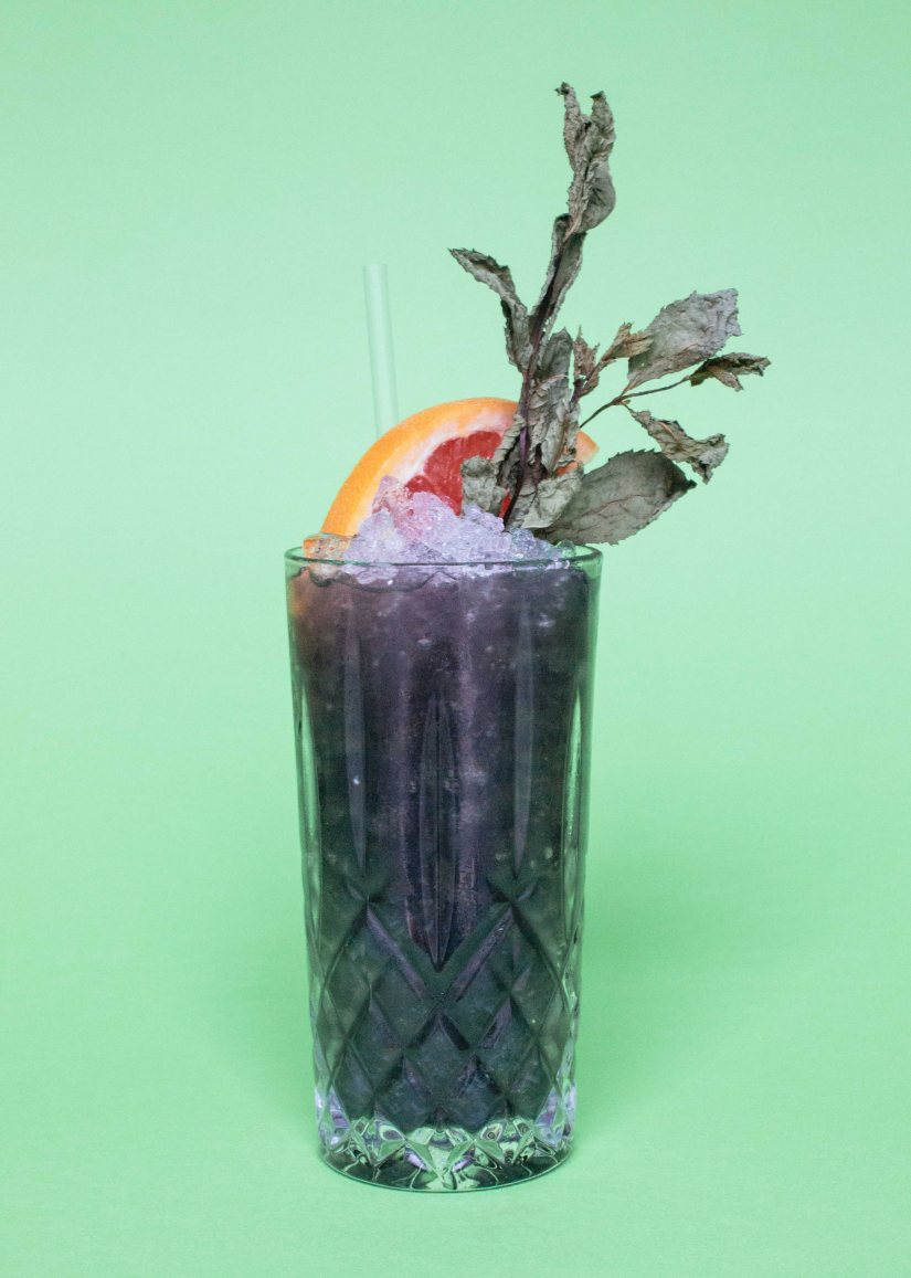 - Add all ingredients to a tall glass and swizzle. Garnish with dead mint and grapefruit.