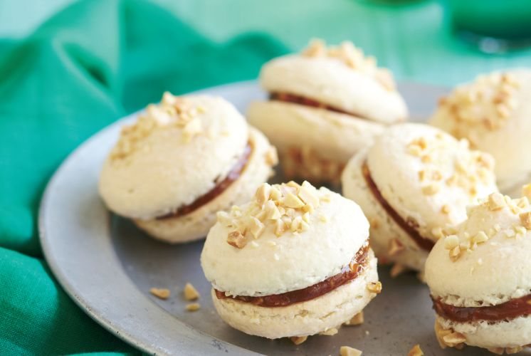 - Spoon the caramel into a piping bag and then pipe on the centre of half of the macaron shells. Top with a second macaron shell and twist gently to spread the mixture to the edges.